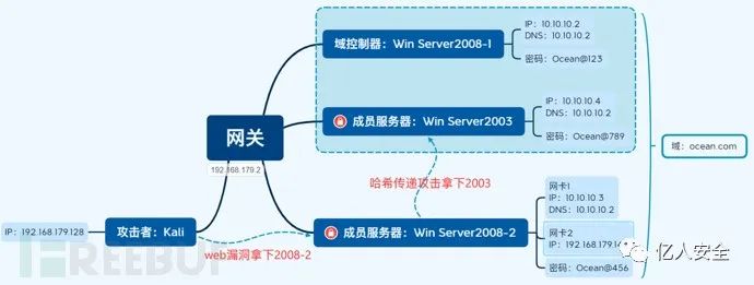 成员服务器Winserver 2008-2具有双网卡,与攻击者在同一网段(192)可以直接访问,在现实中就是公网IP