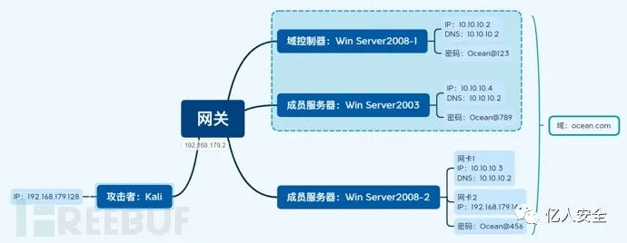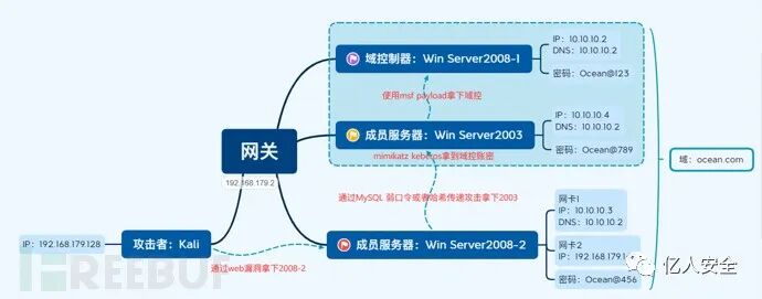 因为是内网渗透,所以环境中成员服务器Winserver 2008-2已经因为漏洞使用MSF拿下了