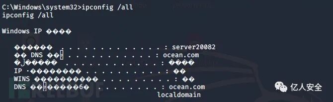 通过这些信息可以判断 成员服务器Winserver 2008-2 在 ocean.com 域中,根据 DNS 信息判断域控主机 IP 为10.10.10.2