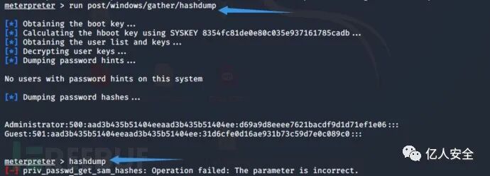 hashdump报错:[-] priv_passwd_get_sam_hashes: Operation failed: The parameter is incorrect.