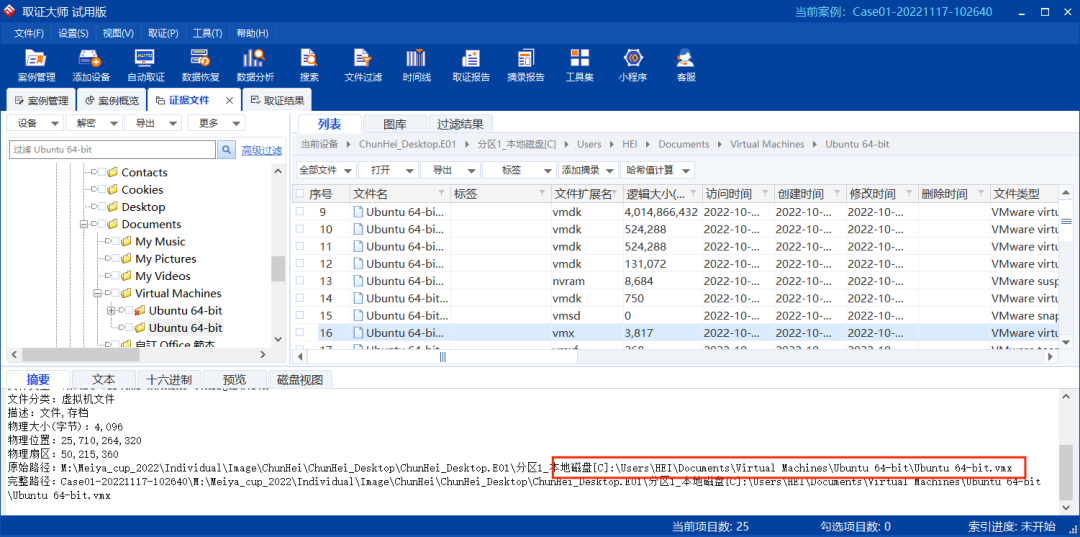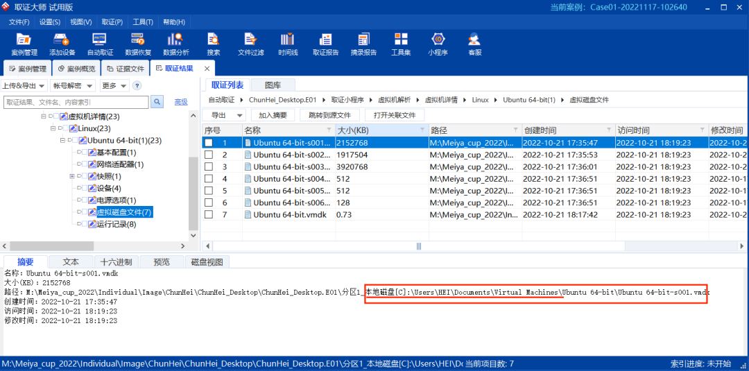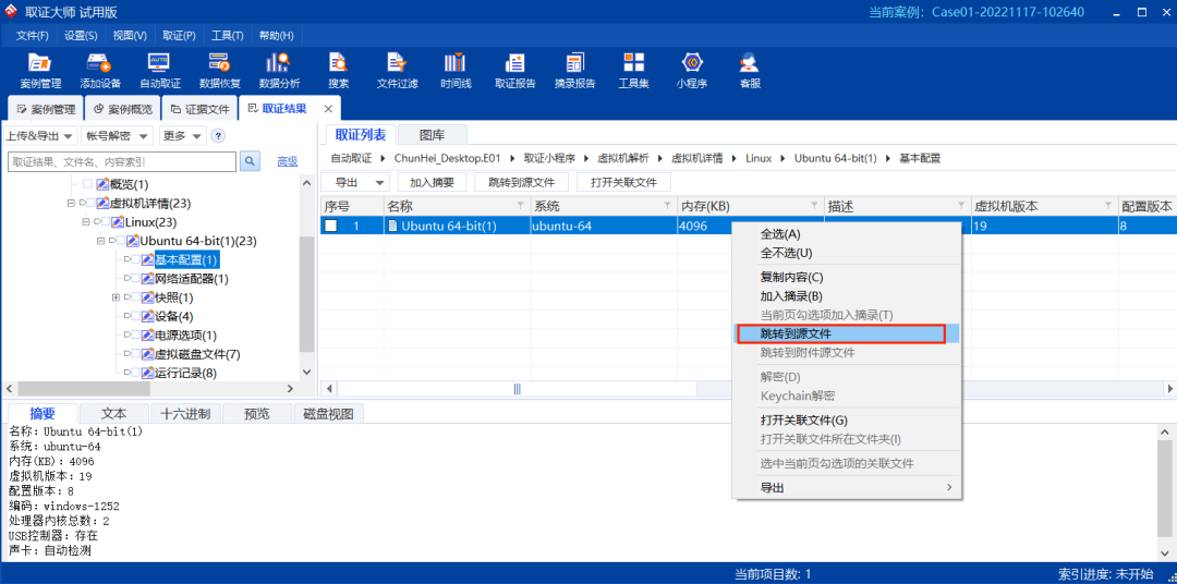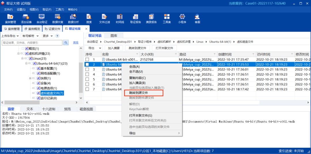 也可以在虚拟机“基础配置”栏右击跳转源文件,在证据文件目录下找到虚拟机存放路径。