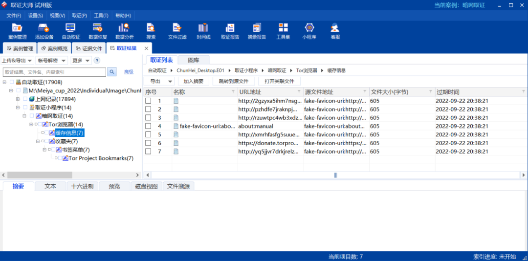 运行自动取证后可发现,取证大师“上网记录”栏中只有Internet Explorer、Microsoft Edge、Google Chrome这3个浏览器。由于题目为多选题,因此在未确定答案的前提下,需判断剩下的Tor浏览器是否被嫌疑人使用过。图15 取证大师自动取证后浏览器结果