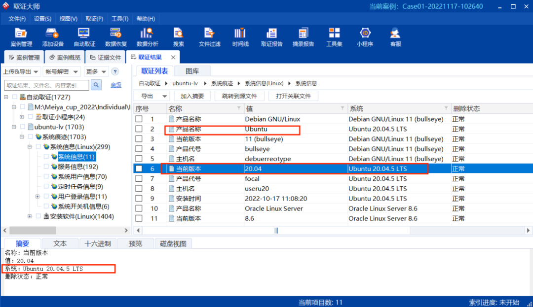 对扫描出的磁盘结构进行自动取证,通过查看系统痕迹里的系统信息来获取该虚拟机的系统版本号。