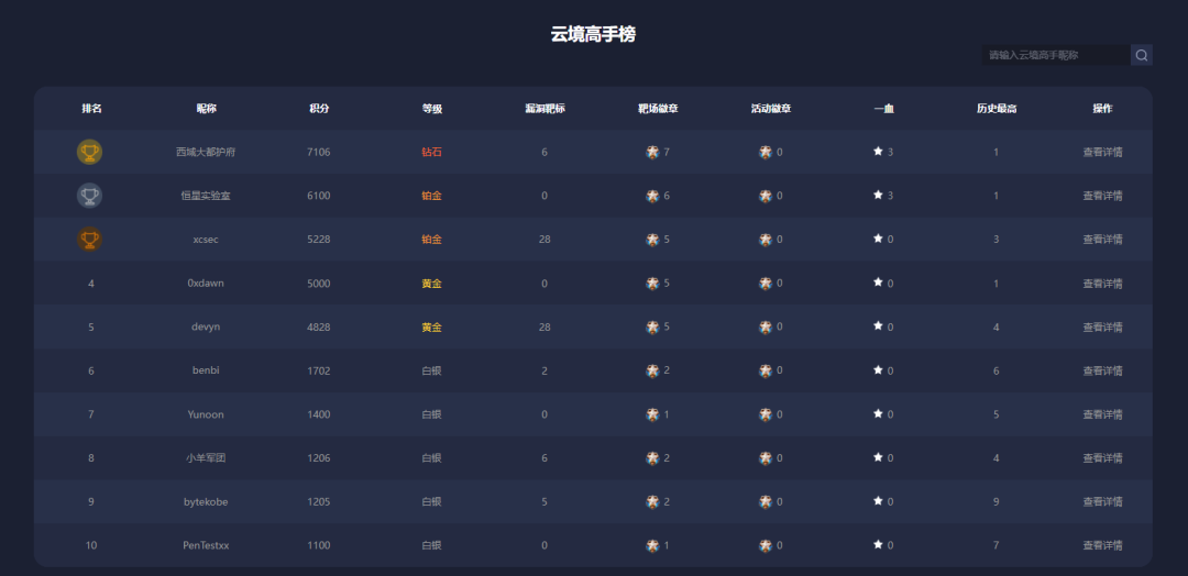 春秋云境.com全面深入网络安全实战人才培养的各个阶段,通过专业系统评估用户实战漏洞和能力水平,设计立体化学习路径协助用户不断提升。春秋云境.com为广大试炼者提供独立的靶标练习环境、多点攻防环境和多元的社区交流环境,通过独特徽章墙和个性化征程设计记录用户学习成长历程,增强了学习成就感。系统展示了用户攻克积分和排名情况,靶标积分和在线时长能够帮助用户快速定位薄弱环节,为用户把握自身能力提供了参考,循序渐进提升用户实战技能,帮助安全守护者燃起未来之火,照亮理想的路。