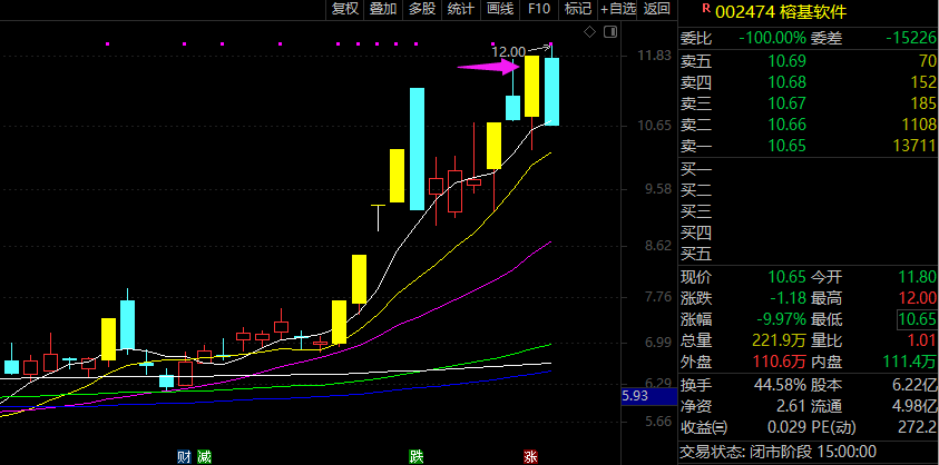 跟榕基软件待遇差不多,倘若昨天启动第一时间买入,今天有很多时间可以赚钱走,但如果今天去接力,如果早盘去的,收盘又是浮亏五六个点。