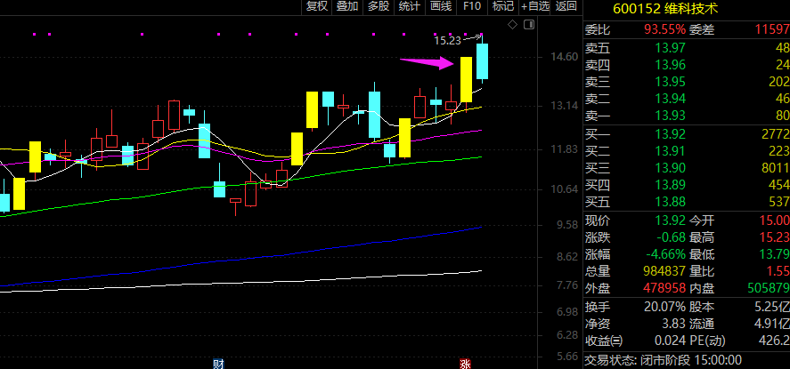 昨天钠电池的龙头,维科技术,今天走势是这样的: