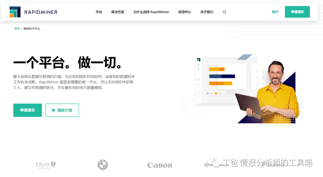 RapidMiner是为企业设计的数据科学平台,用于分析组织员工,专业知识和数据的总体影响。Rapid Miner的数据科学平台旨在在整个AI生命周期中支持许多分析用户。它于2022年9月被Altair Engineering收购。