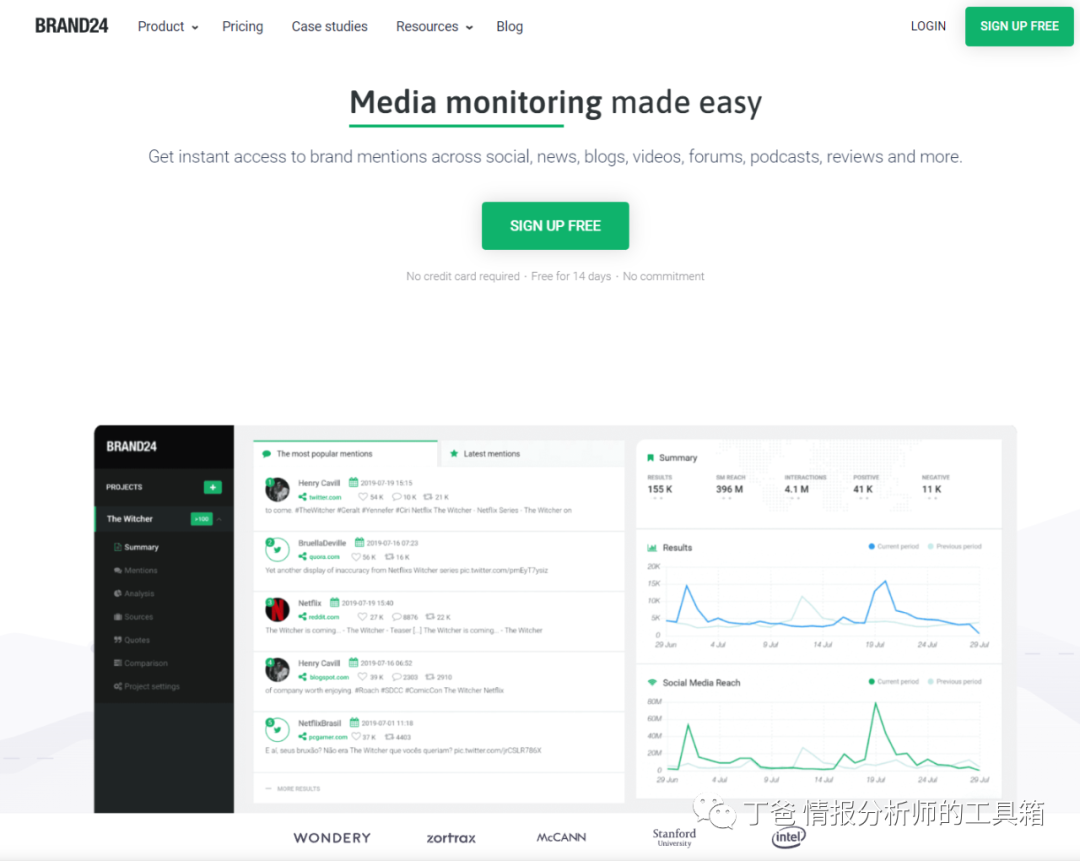 Brand24 实时收集提及并提供强大的媒体监控分析。它可以在工具仪表板的不同选项卡内使用。Brand24 应用机器学习算法和自然语言处理来实时分析文本数据。