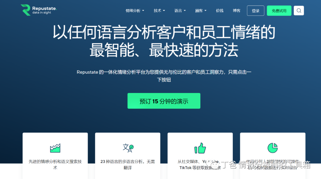 Repustate 是一种情绪分析工具,可为企业提供 23 种不同语言的文本分析。