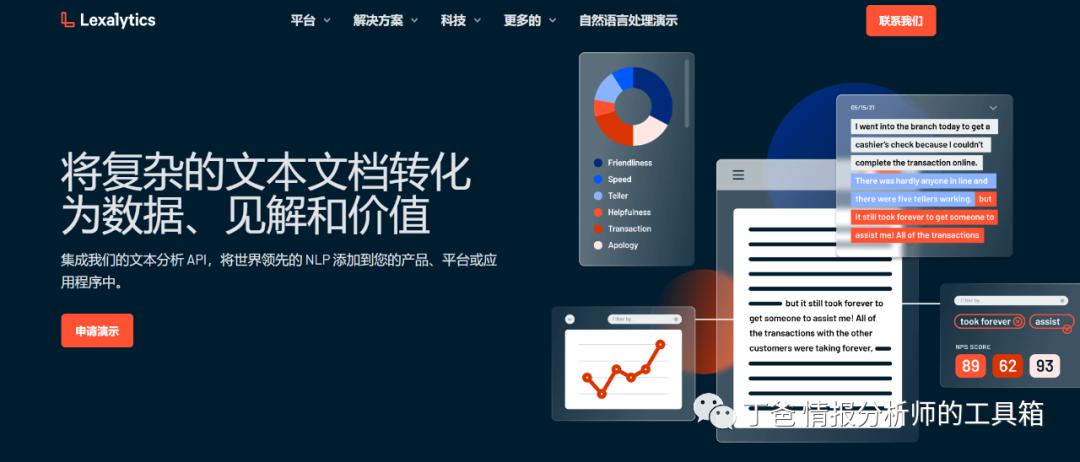 Lexalytics,Inc.为使用SaaS和基于云的技术的众多公司提供情感和意图分析。Lexalytics的引擎Salience 6是作为本地多语言文本分析引擎构建的。