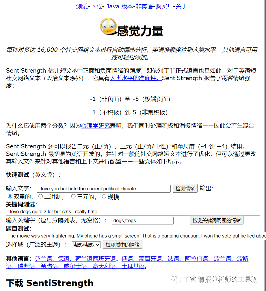 文本情感分析(也称为意见挖掘)是指用自然语言处理、文本挖掘以及计算机语言学等方法来识别和提取原素材中的主观信息。文本情感分析的一个基本步骤是对文本中的某段已知文字的两极性进行分类,这个分类可能是在句子级、功能级。分类的作用就是判断出此文字中表述的观点是积极的、消极的、还是中性的情绪。更高级的“超出两极性”的情感分析还会寻找更复杂的情绪状态,比如“生气”、“悲伤”、“快乐” 等等。