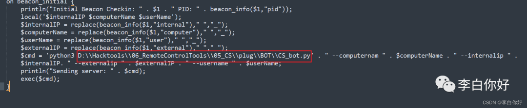 将CS_bot.cna中的路径改为CS_bot.py的绝对路径: