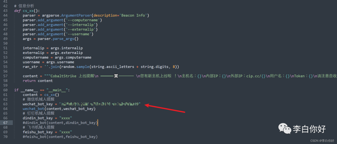 在CS_bot.py中填写企微机器人key,将不需要的提醒注释掉: