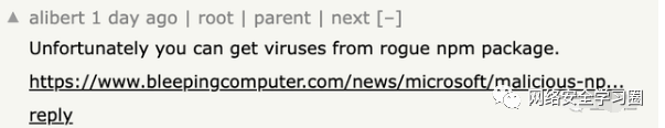 他认为不行,因为现在npm包里藏病毒这种事也不少见了。