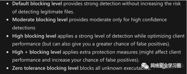 CloudBlockLevel控制云端阻拦级别,可以设置成0,1,2,4,6,最高为6,会阻拦所有未知的可执行程序。