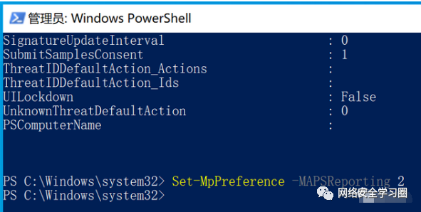 输入“Set-MpPreference -MAPSReporting 2”就可以开启高级模式