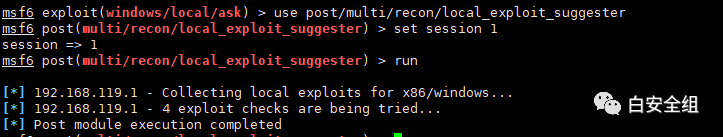 use post/multi/recon/local_exploit_suggester进行信息搜集