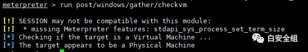 run post/windows/gather/checkvm来查看对方是否是虚拟机