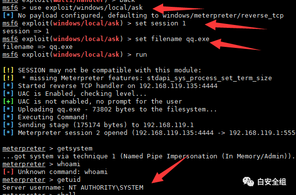 use exploit/windows/local/ask这里就成功拿到了最高权限