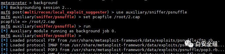 use auxiliary/sniffer/psnufflsset pcapfile /root/2.caprun