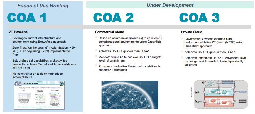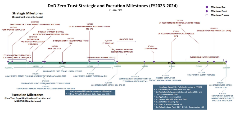 与战略一同发布的路线图列出了使用美国防部当前IT基础设施和功能实现零信任的基准“行动方案”