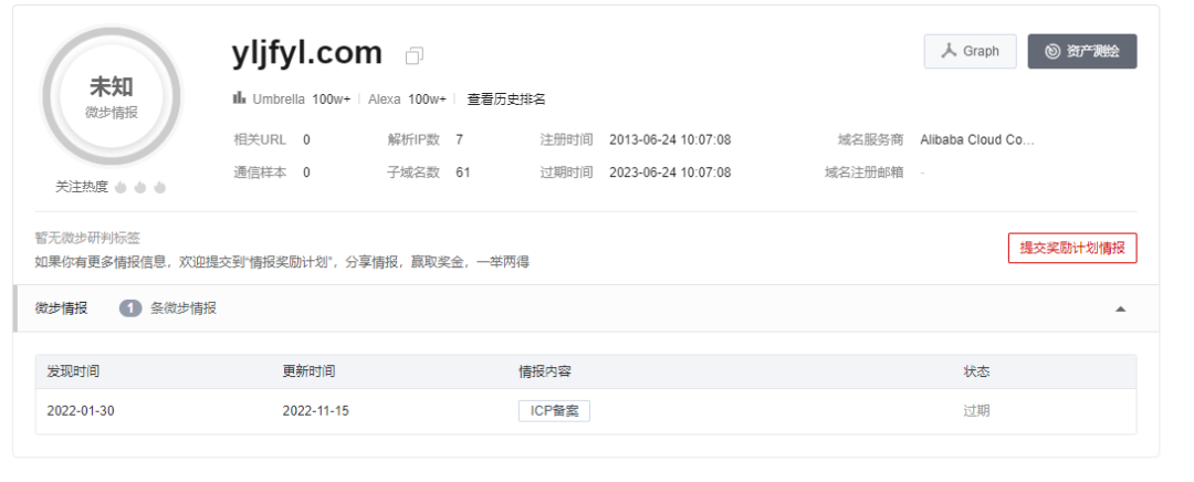 为了更好的吸引用户,这类的灰色站点往往都是以域名访问为主,域名之前有过ICP备案,但在备案到期后被快速的抢注,也印证了大部分赌博站点的推广人员会实时的监听到期的域名,进行自动化的页面生成高效的部署推广。结合X情报社区例子:yljfyl.com原本是河南某ICP备案过一个网站如下图:![]()