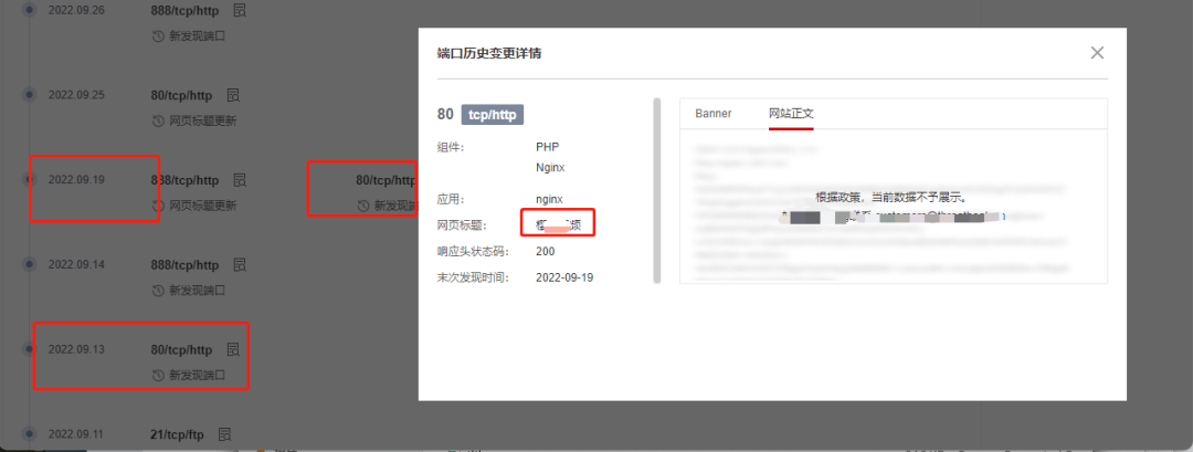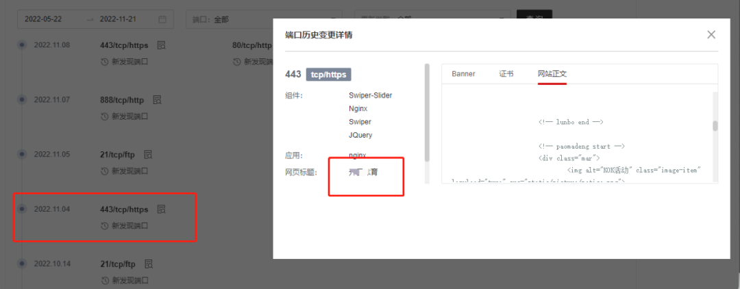 通过X情报社区查看该IP地址的历史测绘记录数据发现,该网站9月份还是一个色情站点,下图为X情报社区资产测绘-历史扫描记录:![]()