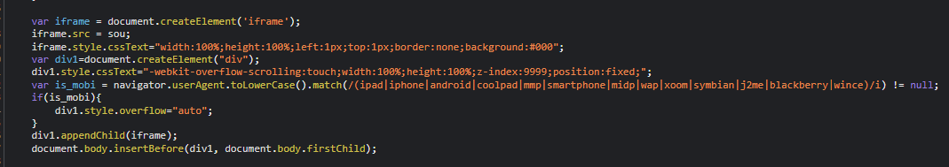 另一部分恶意Js代码内容直接采用十六进制编码进行隐藏。最终编码通过简单加密混淆的方式来绕过现存基于文本的内容检测。第三方Js通过变量拼接的方式最终写入Iframe覆盖仿冒的页面:![]()
