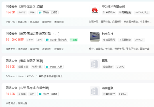 网络安全人才“实战能力”是企业最看中的能力。从业务场景需求出发,网络安全人才实战能力可以归纳为“攻防实战能力”、“漏洞挖掘能力”、“工程开发能力”、“战效评估能力”四种类型。攻防实战能力需要网络安全人才掌握各类安全标准的落地实践经验,可以熟练使用网络安全技术和工具,为具体业务开展风险评估,提供安全落地规划指导和建议。首先,网络安全不光只是web渗透,很多脚本小子仅仅会使用入门工具就觉得自己是在做安全。然而web渗透想做深入一定是先做开发,再搞安全。不懂代码去谈安全,仅仅拿着工具扫扫漏洞,利用现成规则摆弄打点是无法掌握真正的内在逻辑线,获得长足发展的。渗透的学习门槛低导致了大量的人水平参差不齐。然而渗透是门综合的艺术学,光是web渗透,就需要能够审计php,java两大开发语言,还有xss漏洞挖掘,涉及到js,注入,并且还涉及不同的数据库语言,绕过waf,fuzz,更有后钓鱼,水坑后的渗透阶段的内网域控,远控免杀,社会工程学,密码破解和逆向,pwn等等。网络安全技术在飞速发展,如果不能进行科学化、体系化的学习,打好基础掌握底层逻辑,后期在工作中遇到一些不了解的环节,很难真正满足高水平人才的定性,薪水也很难再涨上去。专业的安全企业(乙方)对于渗透测试等人才需求较大,然而从长远来看,安全企业的高端人才缺口会缓解。对于很多甲方企业,尽管安全是花钱的部门而非创造收益的板块,而数字化的深度发展会让他们寻求代表“蓝方”的防御型人才。![]()