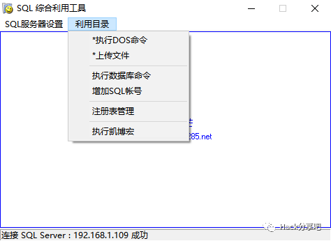 多年前流行1433抓鸡那会用的人特别多,支持功能有:执行命令、上传文件、执行数据库命令、增加SQL账户、注册表管理等。