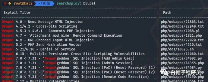 根据探测到的cms,php版本信息搜索kali本地自带Exploit-DB库看看有没有相应的poc: