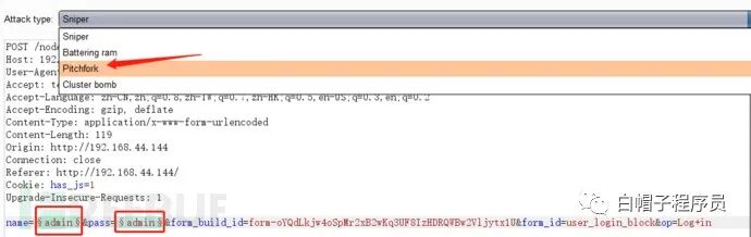 爆破模式自选,由于不确定账户是不是admin所以我把name后面的参数也加上了同时爆破账户和密码可能会有点慢,尝试一下。