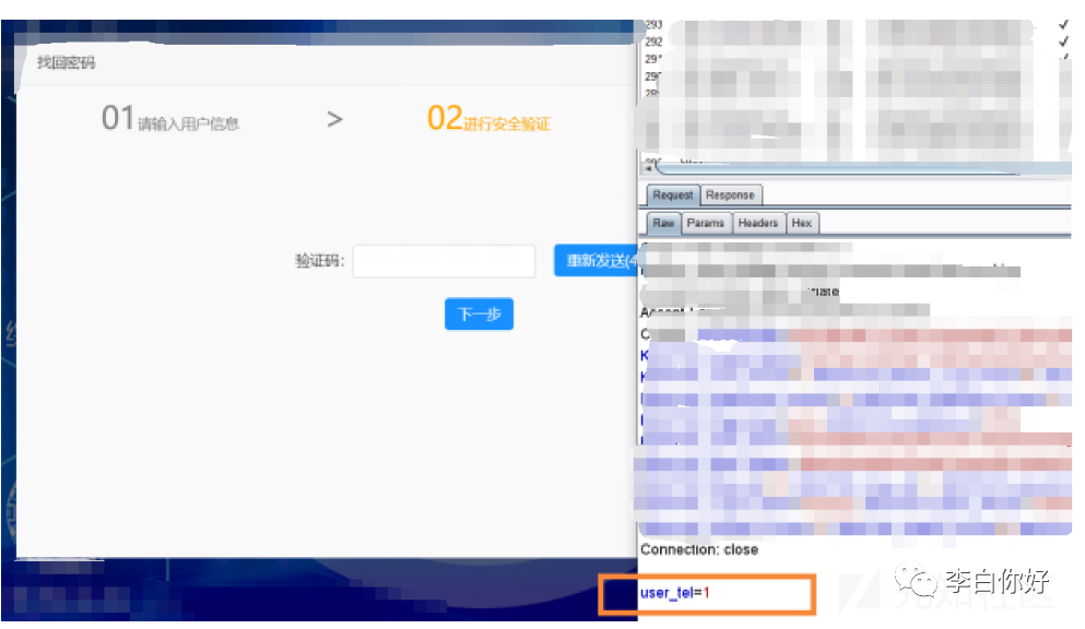 再来一次,抓包并修改响应包,将0改为1,放包后成功来到第二步,前端自动请求了一个后端接口发送验证码