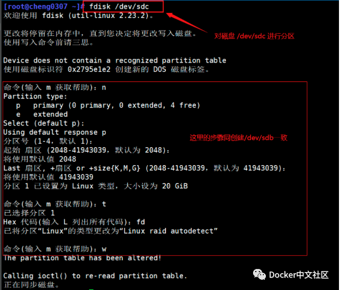 mdadm /dev/md0 -a /dev/sdc1 — 添加指定磁盘