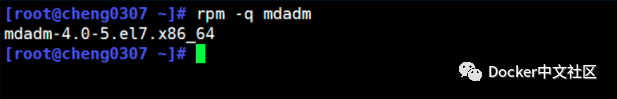 使用rpm -q mdadm进行检查,如下图代表已安装过mdadm软件,未安装的话使用yum install -y mdadm 进行安装。