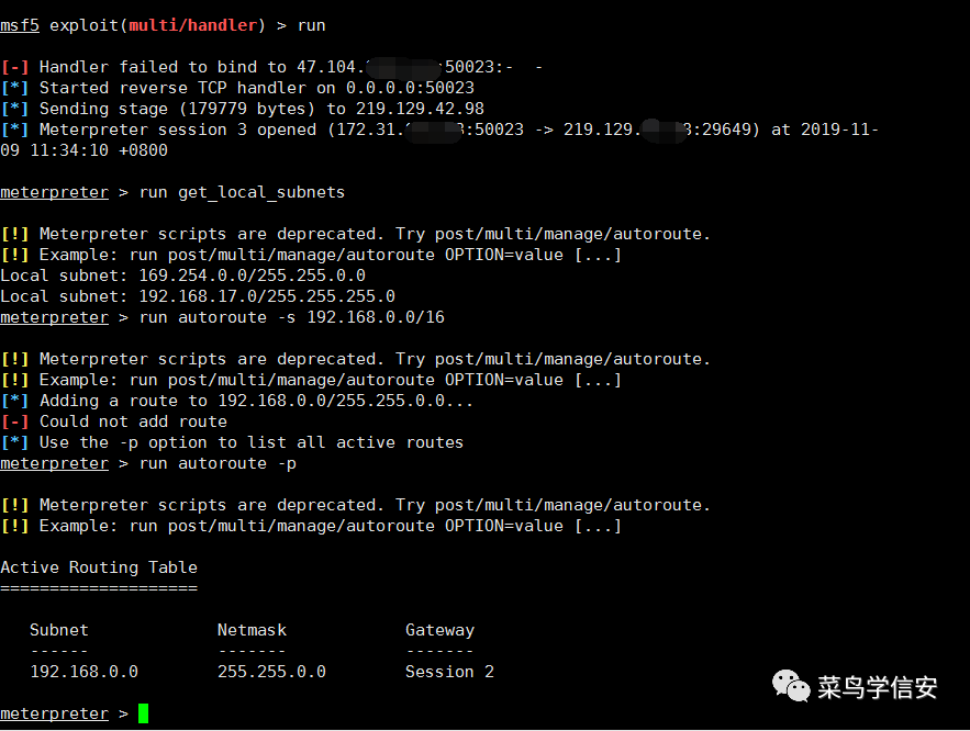 run autoroute -s 192.168.0.0/16查看是否添加好路由