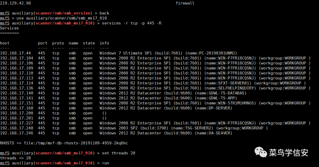 然后…… 居然没有一台能正常反弹shell??我太难了,难道是内网出不来?还是被waf拦截了?(听说msf里面的17-010失败率很高!)