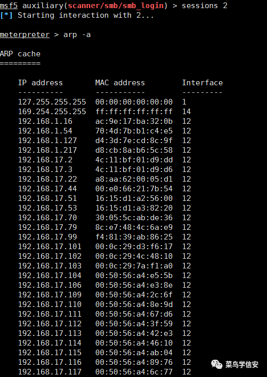 run autoroute –p先扫描一下192.168.17.0这个段。