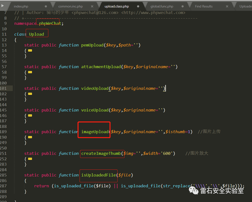 Upload类下,定义了几个静态方法,主要是图片、视频、压缩包上传,图片放大等方法
