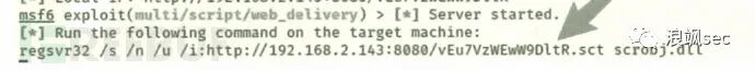 ①通过Metasploit启动一个Web Delivery,并生成用于Regsvr232执行的Payload