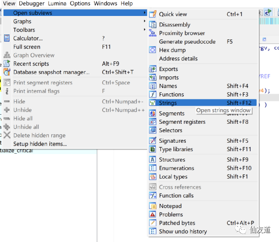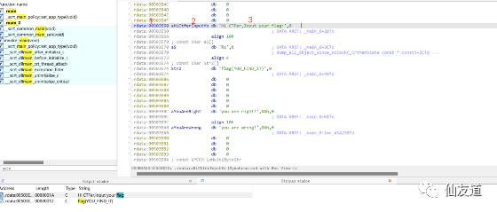 IDA 中有一个窗口叫做【字符串表】 该表收集了程序中所有字符串。