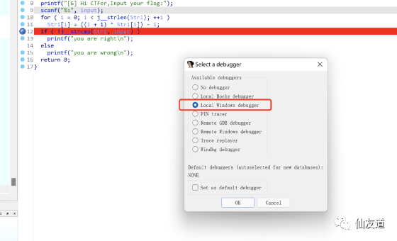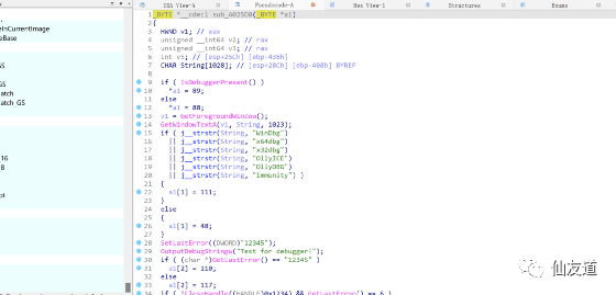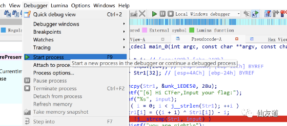 在反调试函数后代码中加断点,先运行程序,在"Attach to process"选择进程,