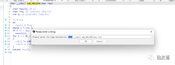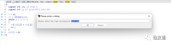 根据上下文信息判断参数或者变量的类型, 在标识符上按下Y 键,输入对应的类型