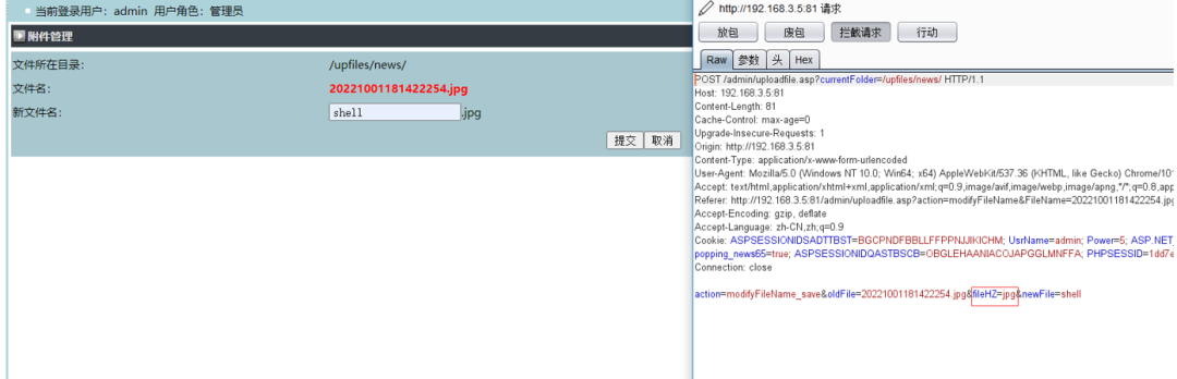通过抓包把文件类型改了,改成图片里面一句话马的执行类型,这个站是asp站,我传的是asp马,所以改的也是asp