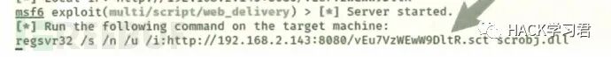 ①通过Metasploit启动一个Web Delivery,并生成用于Regsvr232执行的Payload