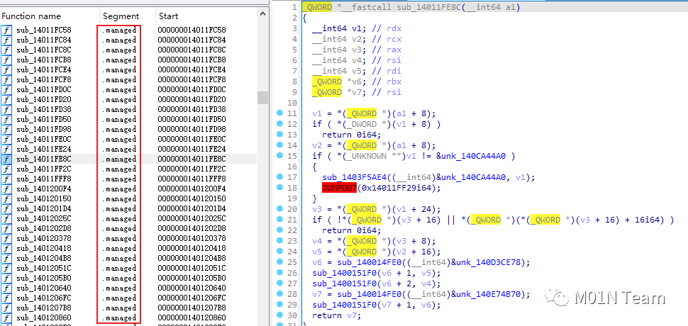 从反分析的角度来看,由于NativeAOT形式的二进制具备与传统.NET程序不同的格式,原有的分析工具与积累的检测特征不再适用。由JIT生成的汇编代码在分析调试的难度上也是更上一层楼,带来了更大的分析溯源成本。