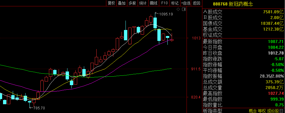 医药非常好猜,昨天说过医药,原话是:“新冠药指数跌到20日线附近,如果不破位而是横盘的话,未来有可能再来个双头”。