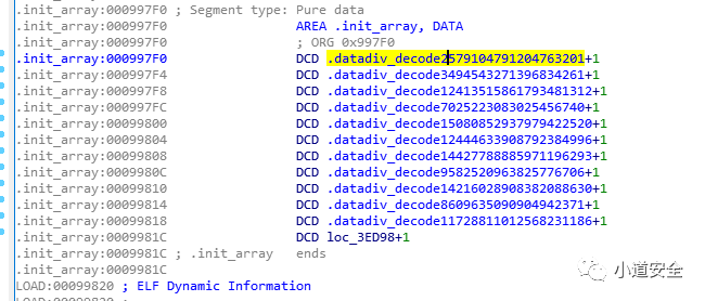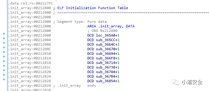 2.通过基于ollvm的源代码,简单修改定制olllvm的源码,将解密函数名字修改成为非标准的,但是这种的字符串加密在init_array区段中依然会有展示,只不过展示的是非标准的函数信息。这种加密也是通过疑惑的方式进行加密。